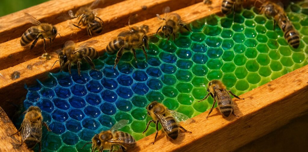 Em 2012, apicultores de Ribeauvillé, na Alsácia, ficaram perplexos ao ver mel azul, verde e até marrom intenso dentro das colmeias. As cores vibrantes levantaram imediata suspeita.